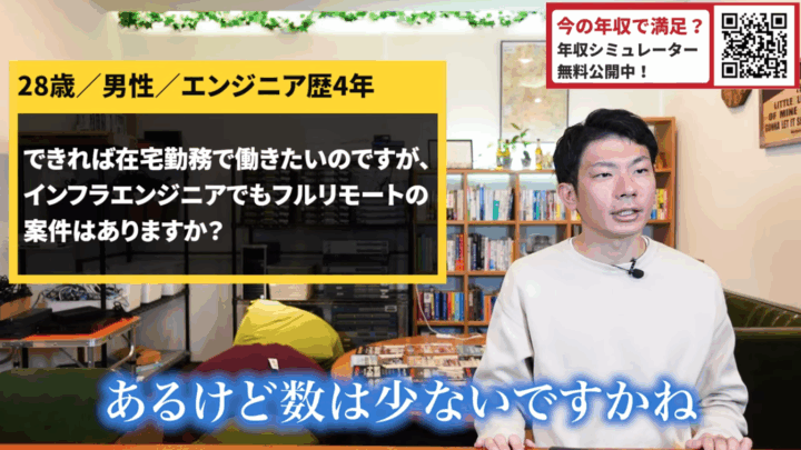 インフラエンジニアでもリモート案件は存在しますが、数は多くありません。