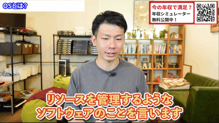 OSは一言でいうと、ハードウェアとアプリケーションの間で、リソースを管理するソフトウェアです。